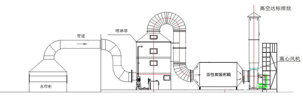 中等排放量,常见的过程有:收集-喷雾塔-活性炭吸附箱(或UV光解)-风扇-排放过程。