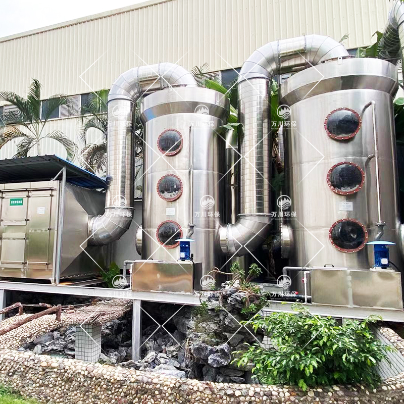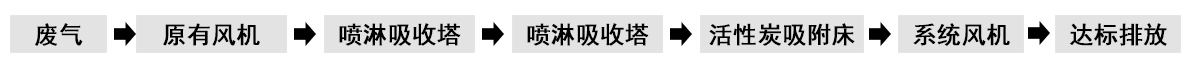 根据客户需求和我司实地考察之后,最终采用‘两级喷淋吸收法+活性炭吸附法’对其进行处理。采用水喷淋一方面可以降温,另一位方面能够让水吸一部分的有机废气,降低后续活性炭吸附的负荷。